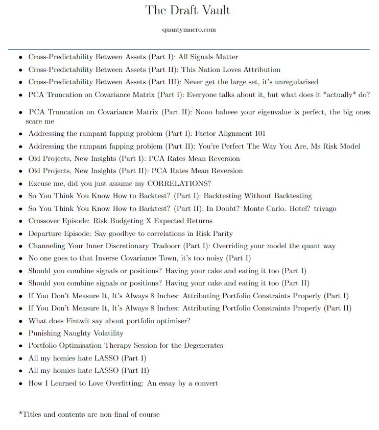 lastly just wanna say barring all this sub stuff, even writing the articles themselves have made me at least twice a better quant than I was previously. and ~70% of the articles were sparked by the stuffs I read here, so just wanna say my appreciation for the community. cheers my gs